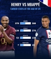 直播吧3月13日讯 著名网站德转晒出了巴黎巨星姆巴佩在24岁时,与法国传奇球星亨利在24岁时的数据对比。两人24岁时出场数基本一致,但前者的进球、助攻、奖杯数均是后者两倍。具体数据如下:场次:379场vs388场进球:138球vs276球助攻:52助vs138助奖杯数:7vs15